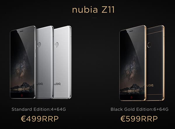ZTE Nubia Z11 выпускается в двух модификациях: обычной с 4 ГБ ОЗУ и премиальной с 6 ГБ. В первом случае можно выбрать модель с корпусом белого или темно-серого цвета, а премиальная версия доступна только в черном цвете с золотистой окантовкой — такой вариант, естественно, выглядит наиболее впечатляюще.