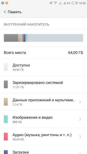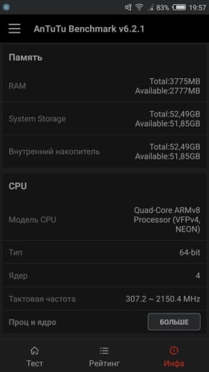 Объем оперативной памяти смартфона составляет 4 ГБ, объем встроенной флэш-памяти — 64 ГБ. Этот объем можно увеличить за счет карт microSD объемом до 200 ГБ. На практике наша проверочная карта Transcend Premium microSDXC UHS-1 объемом 128 ГБ уверенно распозналась устройством. Также есть возможность подключать к порту USB внешние флэш-накопители в режиме OTG.