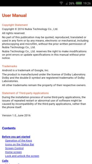 Nubia Z11 базируется на платформе Android 6.0.1 Marshmallow с оболочкой nubia UI 4.0. Знакомый интерфейс с широкой поддержкой жестов и многочисленными «тонкими» настройками, такими как работа индикатора, переназначение клавиш и т. д., дополнен упомянутыми возможностями управления с помощью краев экрана. В остальном это довольно привычный MIUI-подобный интерфейс без отдельного меню приложений, с широкими возможностями кастомизации, от собственных тем оформления до мультиэкранности и дублирования и ведения отдельных копий приложений для каждой учетной записи. Возможностей очень много, и для того чтобы легче было в них ориентироваться, разработчики приготовили пользователю целое подробное руководство. Примечательно, что на этот раз гораздо больше разделов оказались переведены на русский язык, хотя без грамматических ошибок все же не обошлось.