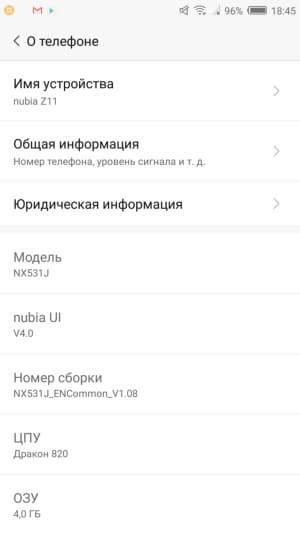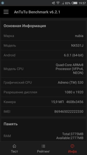 Основные характеристики ZTE Nubia Z11 (модель NX531J)