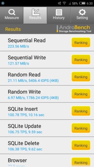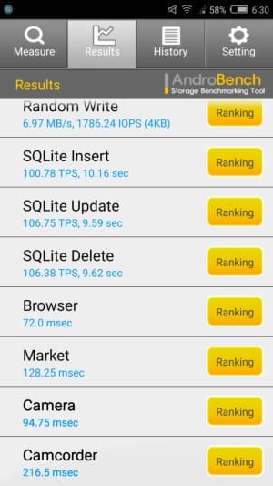 Результаты теста AndroBench на скорость работы с памятью:
