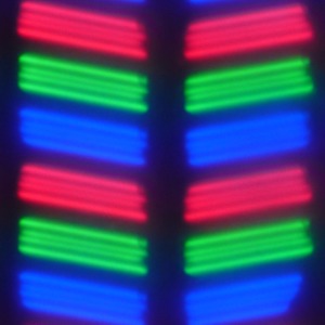 В данном смартфоне используется матрица типа IPS. Микрофотографии демонстрируют типичную для IPS структуру субпикселей: