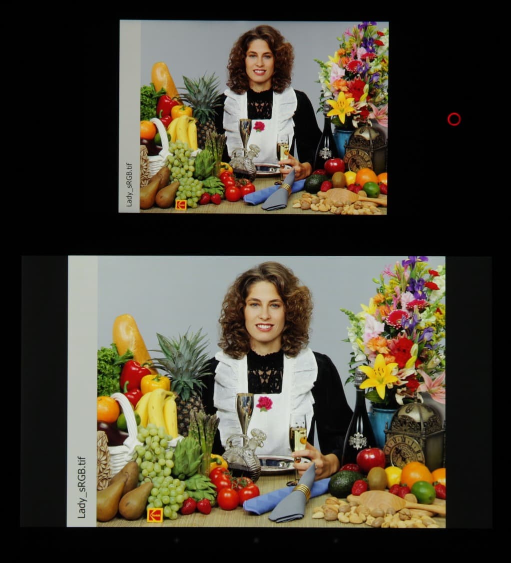 Видно, что цвета не сильно изменились у обоих экранов, и контраст под углом сохранился на высоком уровне. И белое поле: