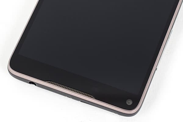 Передняя поверхность полностью прикрыта плоским защитным стеклом Gorilla Glass. Окошко фронтальной камеры и глазки сенсоров спрятаны под стеклом в верхней части над экраном, рядом с решеткой разговорного динамика.