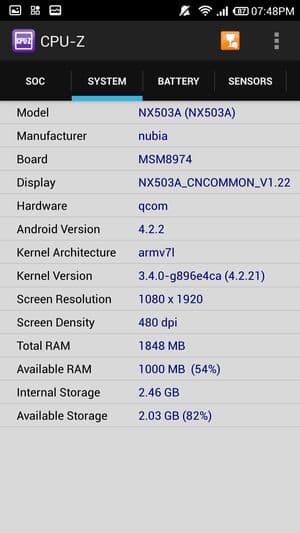| ZTE nubia Z5s (Snapdragon 800) | HTC One (M8) (Snapdragon 801) | Samsung Galaxy S5 (Snapdragon 801) | LG G2 (Snapdragon 800) | TCL Idol X+ (MediaTek MT6592) | |
