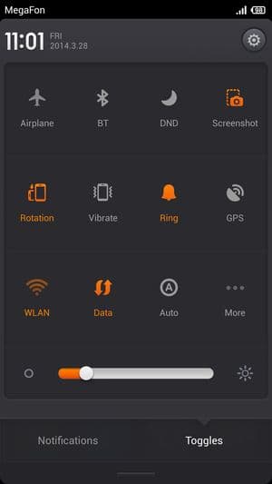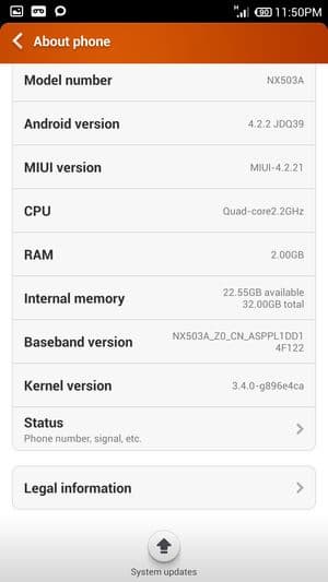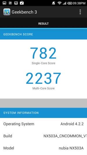 В качестве системы используется программная платформа Google Android не самой свежей версии 4.2.2 и фирменный графический пользовательский интерфейс. Оболочка практически точно такая же, как и у протестированных нами ранее других моделей серии nubia. Наиболее заметная черта оболочки — отсутствие отдельного меню приложений. Иконки устанавливаемых программ автоматически раскладываются прямо на рабочие столы, причем вперемешку с виджетами. Естественно, не только поддерживается создание папок/групп, но и часть предустановленных приложений заботливо разложена по тематическим папкам самими разработчиками. Поддерживается работа с жестами.