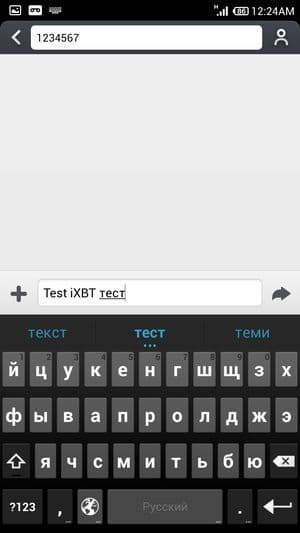 Самопроизвольных перезагрузок/выключений за время тестирования не наблюдалось. Экран у смартфона крупный, поэтому прорисовка букв и цифр виртуальной клавиатуры вполне комфортна для управления. Выделенного верхнего ряда с цифрами на штатной клавиатуре здесь нет — придется каждый раз переключать раскладку. Сама раскладка и расположение клавиш стандартны: для переключения языковой раскладки достаточно нажать на кнопку с изображением глобуса. Телефонное приложение поддерживает Smart Dial.