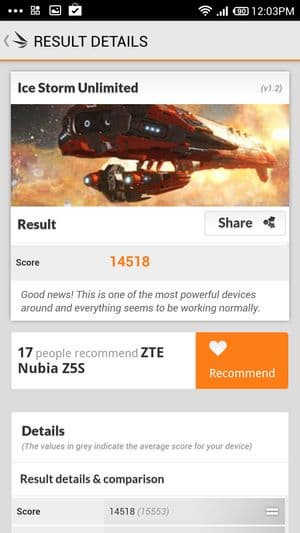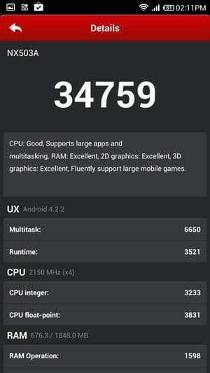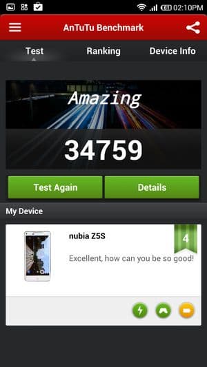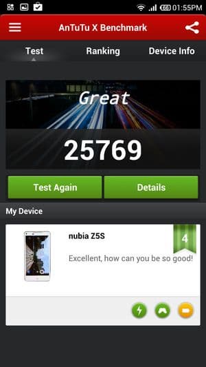 Вот что выяснилось после окончания всех тестирований. Что касается конкурирующей MediaTek MT6592, то с ней система Qualcomm (Snapdragon 800) идет практически вровень, даже немного опережая во всех тестах, несмотря на вдвое меньшее количество процессорных ядер. Что же касается новой модификации Snapdragon 801, то по результатам большинства тестов особого прироста по отношению к Snapdragon 800 у нее обнаружено не было. В итоге можно говорить о смартфоне ZTE nubia Z5s как об очень мощном, топовом устройстве, производительности которого еще долго будет хватать для выполнения любых задач. Немного, правда, смущает расхождение результатов между обычным тестом AnTuTu и «честным» вариантом — AnTuTu X (скриншот результатов «античитерского» AnTuTu X мы всегда помещаем справа от основного).