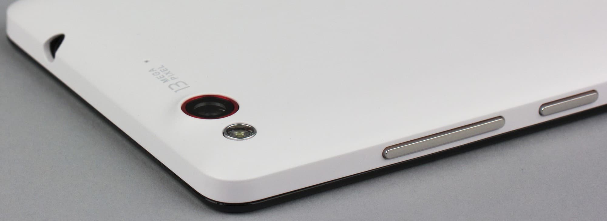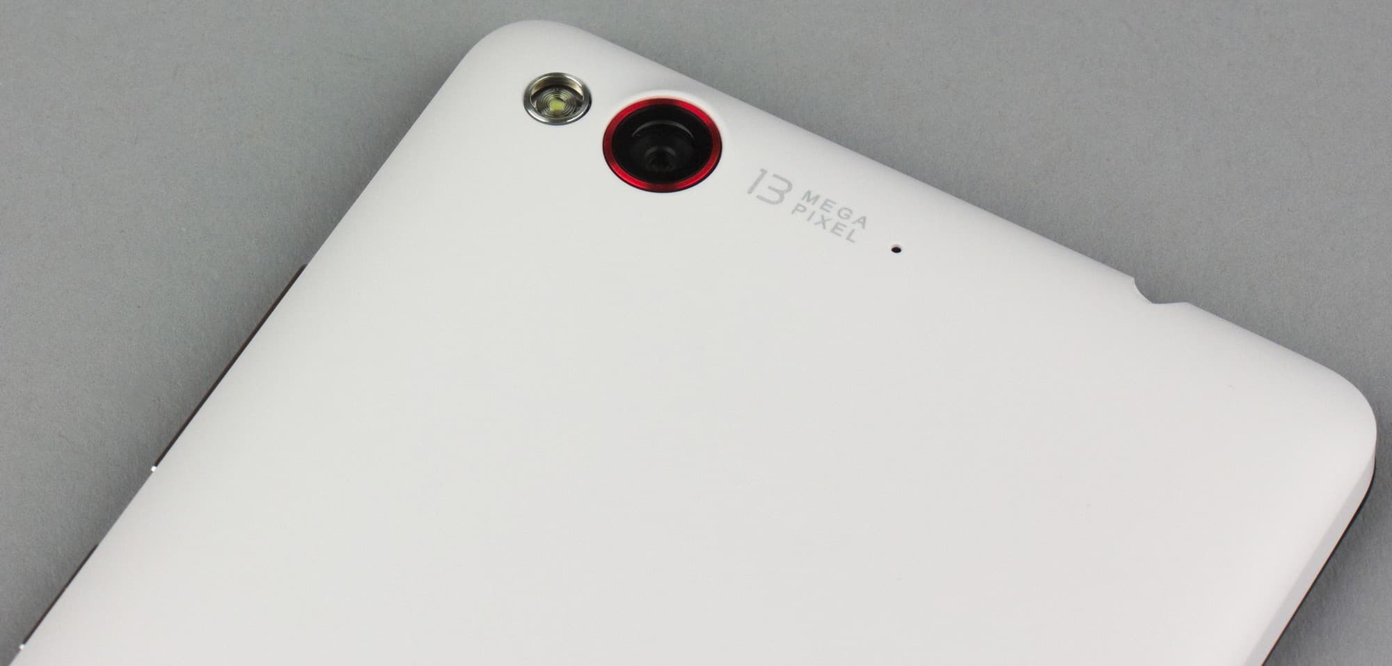 На тыльной поверхности традиционно расположено небольшое окошко основной камеры с прилагающейся к ней односекционной светодиодной вспышкой, способной работать в качестве ярко светящего фонарика при помощи предустановленного ПО.