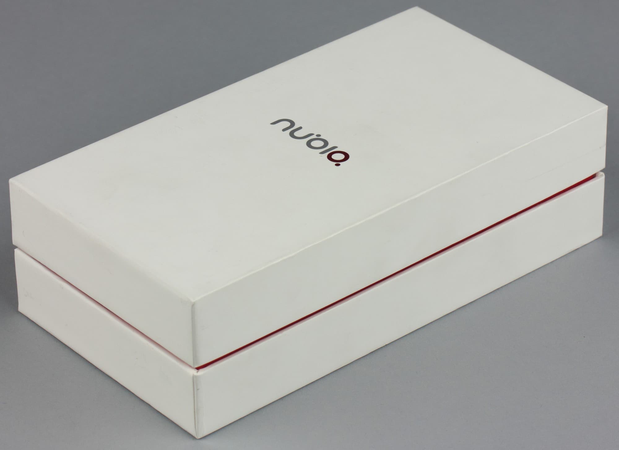 Очередной смартфон из семейства ZTE nubia получил точно такую же по виду и строению упаковку, в какой поставлялись ранее его собратья по линейке. Это совсем небольшая, практически размером с сам смартфон коробочка из твердого белого картона с красной прослойкой посередине. Упаковка выглядит стильно и дорого за счет того, что на ее поверхностях отсутствуют какие-либо картинки и нанесен лишь минимум необходимой информации.