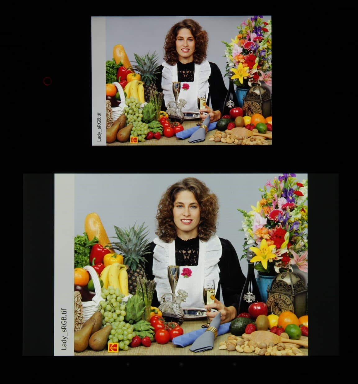 Отметим хорошую равномерность яркости и цветового тона белого поля. И тестовая картинка: