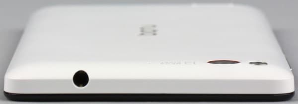 Аудиоразъем для наушников (3,5 мм) находится на верхнем торце. Никакими заглушками или крышками гнезда и разъемы аппарата не прикрыты, поскольку смартфон не обеспечен защитой от воды и грязи. Крепления для ремешка на корпусе устройства также не обнаружено.