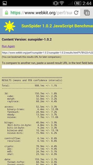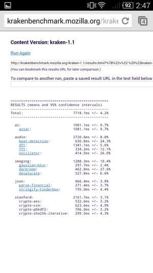 Что касается бенчмарков для оценки скорости движка javascript, то стоит всегда делать скидку на то, что в них результаты существенно зависят от браузера, в котором запускаются, так что сравнение может быть истинно корректным только на одинаковых ОС и браузерах, а такая возможность имеется при тестировании не всегда. В случае с ОС Android мы всегда стараемся использовать Google Chrome.