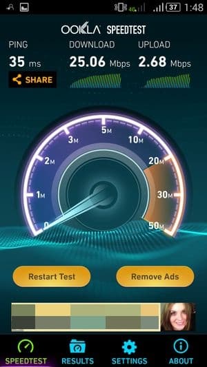ZTE nubia Z7 mini стандартно работает в современных сетях 2G GSM и 3G WCDMA, также имеется поддержка сетей четвертого поколения LTE (4G), в том числе тех частот, которые используются на территории нашей страны. На практике с SIM-картой отечественного оператора МТС аппарат уверенно регистрируется и работает в сети 4G. Причем успешно с этим справляется SIM-карта в любом из слотов, но, как обычно, одновременно в режиме 4G/3G может функционировать лишь одна из них, а вторая в это время ограничена лишь работой в 2G.
