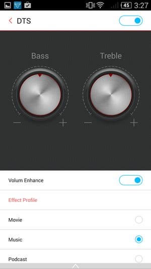 В звуковом плане смартфон весьма неплох. Про наличие отдельного звукового чипа ничего не сказано, возможно его тут и нет, но зато имеется поддержка технологии обработки звука Dolby Digital. Издаваемый основным динамиком звук в целом неплох, искажений особых не замечено, однако это не самый громкий из смартфонов. В слуховом динамике искажений не наблюдается, голос знакомого собеседника, интонации и тембр хорошо узнаваемы. Музыкальный проигрыватель богат на возможности, а настройками можно повлиять на увеличение громкости и добавить низких частот. FM-радио в штатной комплектации смартфона имеется, нашелся и диктофон. Радио работает лишь с подключенными наушниками, выполняющими роль антенны. Диктофон штатными средствами умеет записывать разговор с линии, в настройках можно даже включить автоматическую запись всех телефонных переговоров, если имеется такая необходимость.