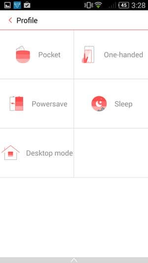 В общем меню настроек присутствует набор профилей работы, удобных для быстрого переключения: «В кармане», «Режим сна», «Настольный» и даже режим энергосбережения, при котором не только отключаются различные энергопотребляющие функции, но и может быть настроена работа графического процессора в зависимости от сценария нагрузки.