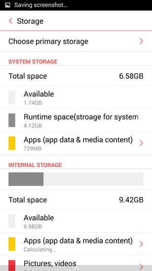 Объем оперативной памяти смартфона составляет 2 ГБ, а собственной памяти для нужд пользователя в устройстве доступно около 9,5 ГБ из номинально обозначенных 16 ГБ. Объем встроенной памяти можно еще увеличить за счет карт microSD: смартфон поддерживает карточки microSD объемом до 64 ГБ. Также можно в режиме USB OTG подключать внешние флэш-накопители, клавиатуры и мышки к порту USB при помощи специального переходника.