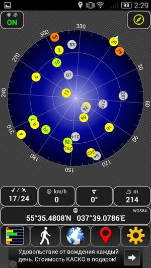 Поддержки технологии NFC мы в нашем тестовом экземпляре не обнаружили, хотя некоторые продавцы включают данный параметр в список характеристик модели на своих сайтах. К порту USB здесь можно подключать внешние устройства (будь то мышки, клавиатуры или флэшки). Навигационный модуль поддерживает как GPS, так и отечественный Глонасс, а также китайскую сеть Beidou (спутники Beidou обозначены красными флажками).