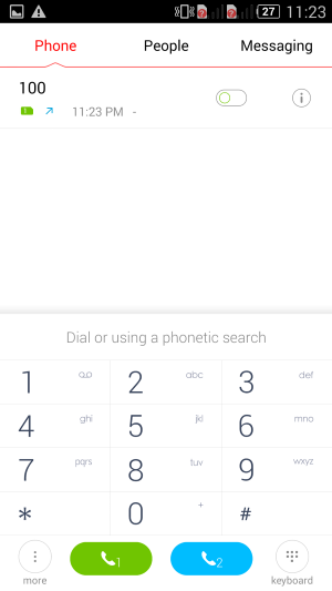 Самопроизвольных перезагрузок/выключений за время тестирования не наблюдалось. Экран у смартфона крупный, поэтому прорисовка букв и цифр виртуальной клавиатуры вполне комфортна для управления. Выделенного верхнего ряда с цифрами на штатной клавиатуре здесь нет — придется каждый раз переключать раскладку. Сама раскладка и расположение клавиш стандартны: для переключения языковой раскладки достаточно нажать на кнопку с изображением глобуса. Телефонное приложение поддерживает Smart Dial.