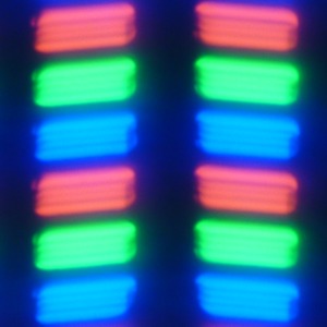 В данном смартфоне используется матрица типа IPS. Микрофотографии демонстрируют типичную для IPS структуру субпикселей:
