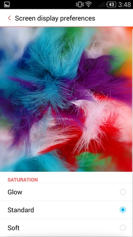 В данном смартфоне в настройках экрана есть возможность слегка уменьшить или увеличить насыщенность цветов (цветовой контраст, охват при этом не меняется):