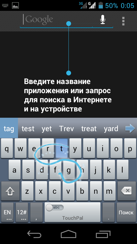 Во-вторых, это виртуальная клавиатура TouchPal, которая встречается во множестве мобильных устройств под управлением ОС Android.