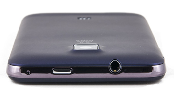 Снизу у ZTE V880G находятся: микрофон, выемка для отсоединения крышки аккумуляторного отсека, Micro-USB-совместимый разъем. На верхнем торце расположены клавиша управления питанием смартфона, разъем 3,5 мм для наушников и дополнительный микрофон.