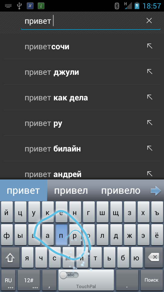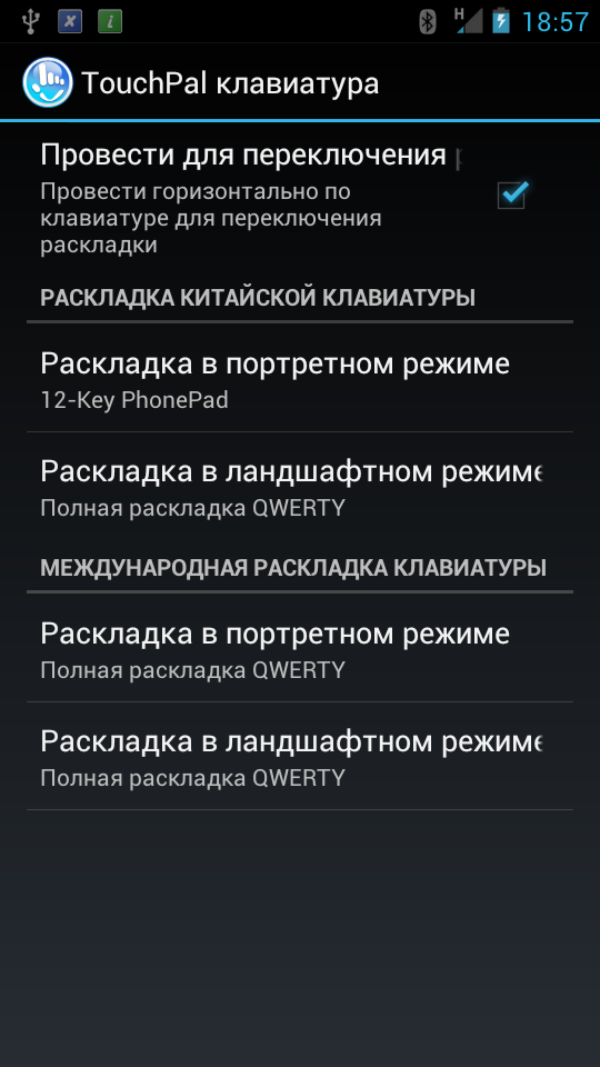В качестве замены штатной виртуальной клавиатуре Android в ZTE V970 установлено приложение TouchPal, которое позволяет вводить текст на множестве языков и множеством способов. Например, доступны несколько видов экранной клавиатуры, с различным количеством клавиш, их размером, распознаванием движений пальца по клавишам — TouchPal Curve, языковыми словарями и системой предсказания ввода. Возможностей у клавиатуры TouchPal действительно множество, каждый сможет выбрать свой любимый способ ввода текста.