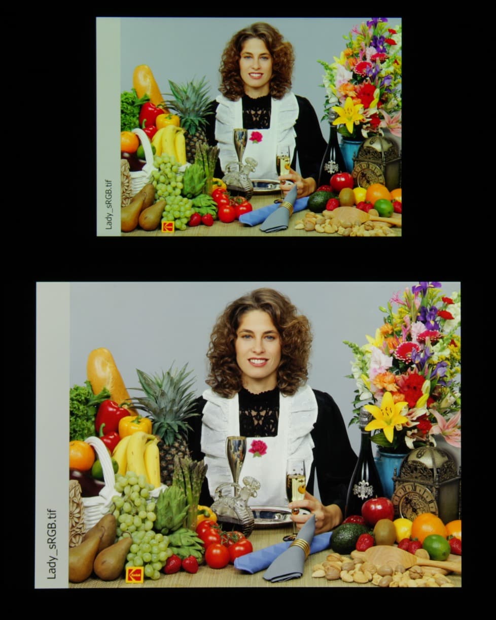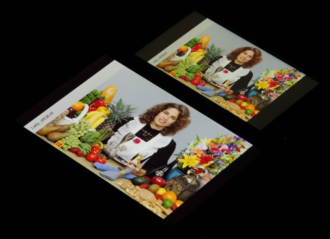 Они нетипичные, но их мы уже видели в случае Sony Xperia Z2 и нескольких других устройств. Sony указывает, что в этих экранах используются светодиоды с синим излучателем и зеленым и красным люминофором (обычно — синий излучатель и желтый люминофор), что в сочетании со специальными светофильтрами матрицы и позволяет получить широкий цветовой охват. Скорее всего, данное утверждение верно и для Zuk Z1. Для потребительского устройства широкий цветовой охват является никак не достоинством, а существенным недостатком, поскольку в итоге цвета изображений — рисунков, фотографий и фильмов, — ориентированных на пространство sRGB (а таких подавляющее большинство), имеют неестественную насыщенность. Особенно это заметно на узнаваемых оттенках, например на оттенках кожи. Результат приведен на фотографии выше.