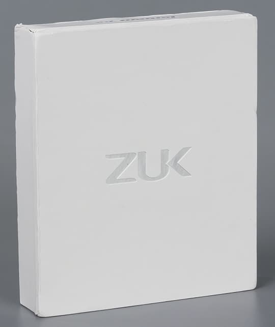 В продажу смартфон Zuk Z1 поступает в привлекательного вида упаковке, выполненной в виде плоской квадратной шкатулки с откидывающейся крышкой. Внутри все аксессуары разложены по отдельным более мелким картонным коробочкам. Упаковка оформлена лаконично и стильно, это сдержанное сочетание белого матового текстурированного картона и серебристых надписей выгодно отличается от знакомой привычной аляповатости, часто встречающейся в продуктах самой Lenovo.
