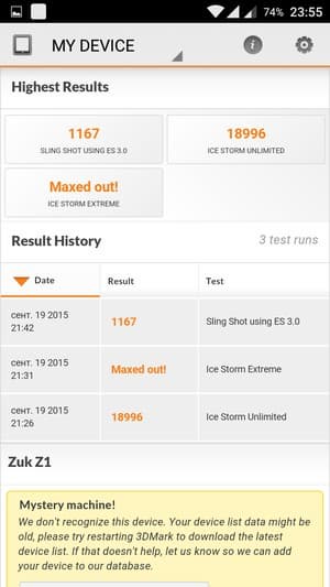 Тем не менее, если отойти от сухих цифр синтетических бенчмарков, недостатка в производительности пользователь Zuk Z1 точно не ощутит. Этот смартфон даже теперь по своей производительности находится на уровне гораздо выше среднего, его аппаратных возможностей еще вполне достаточно для выполнения любых задач, в том числе и требовательных игр.