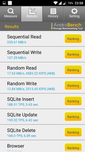 | Zuk Z1 (Qualcomm Snapdragon 801) | Honor 7 (HiSilicon Kirin 935) | Samsung Galaxy S6 edge+ (Exynos 7420) | Meizu MX5 (Mediatek MT6795T) | OnePlus 2 (Qualcomm Snapdragon 810) | |
