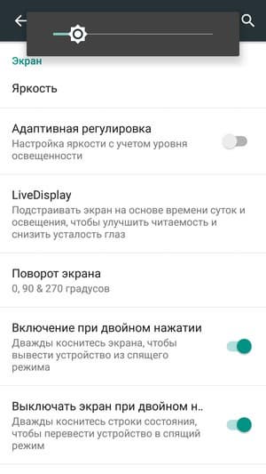 Яркость дисплея имеет автоматическую регулировку на основе датчика освещения. Есть и датчик приближения, который блокирует экран при поднесении смартфона к уху. Технология мультитач позволяет обрабатывать 5 одновременных прикосновений. Экран можно активировать двойным постукиванием по стеклу.