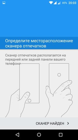 Любопытно, что ПО для работы со сканером здесь универсальное, рассчитанное сразу на несколько разных моделей. Для начала пользователю самому предлагается определить, в каком месте на корпусе находится сканер отпечатков: спереди, сзади или еще где-то. С помощью сенсорной центральной кнопки можно не только идентифицировать пользователя по отпечатку пальца (Touch ID), но также и выполнять дополнительные операции, такие как переключение между запущенными приложениями, возврат к предыдущему меню и др. Сам сканер срабатывает четко, палец к нему можно подносить под любым углом, если прикасаться точно, то ошибок в распознавании практически не будет.