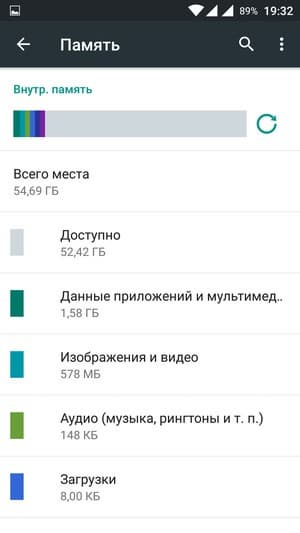 Объем оперативной памяти смартфона составляет 3 ГБ, из них изначально свободно не менее 2,2 ГБ. В аппарате установлено 64 ГБ собственной памяти, из них изначально пользователю доступно для его собственных нужд около 53 ГБ. Объем встроенной памяти нельзя увеличить за счет карт microSD, но есть возможность подключения к порту USB внешних флэш-накопителей в режиме OTG. Здесь используется быстрый интерфейс USB 3.0. На практике на передачу файла размером 3 ГБ с компьютера через порт USB 3.0 на смартфон уходит 60 секунд, то есть скорость составляет около 51 МБ/с. Через порт USB 2.0 компьютера тот же самый файл передается за 2 минуты 10 секунд, то есть скорость составляет около 24 МБ/с.