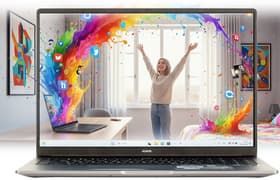 Мы испытали ноутбук с характерными признаками деловой ориентации: наружная оболочка из магниевого сплава, расположение разъемов лишь на двух боковых панелях корпуса, процессор Intel Core i7-1355U со сверхнизким потреблением, 16 ГБ памяти, распаянной на системной плате, встроенный картовод для microSD. Отличительные черты: дисплей OLED 14” с разрешением 2888×1800 (90 Гц), а также веб-камера 1440p, но без механической шторки, два порта USB4/Thunderbolt 4 с поддержкой DisplayPort. При их использовании вместе с HDMI к ноутбуку можно одновременно подключить до трех внешних мониторов.