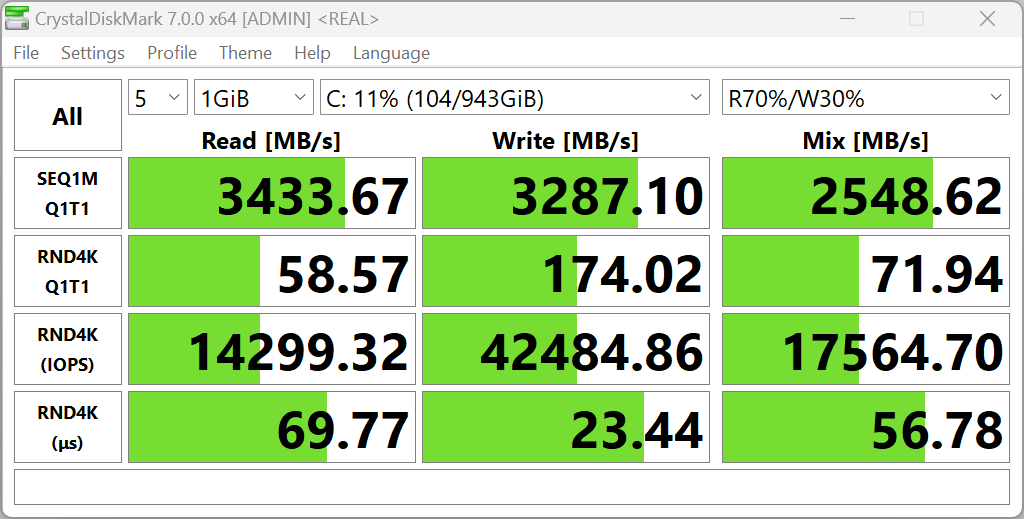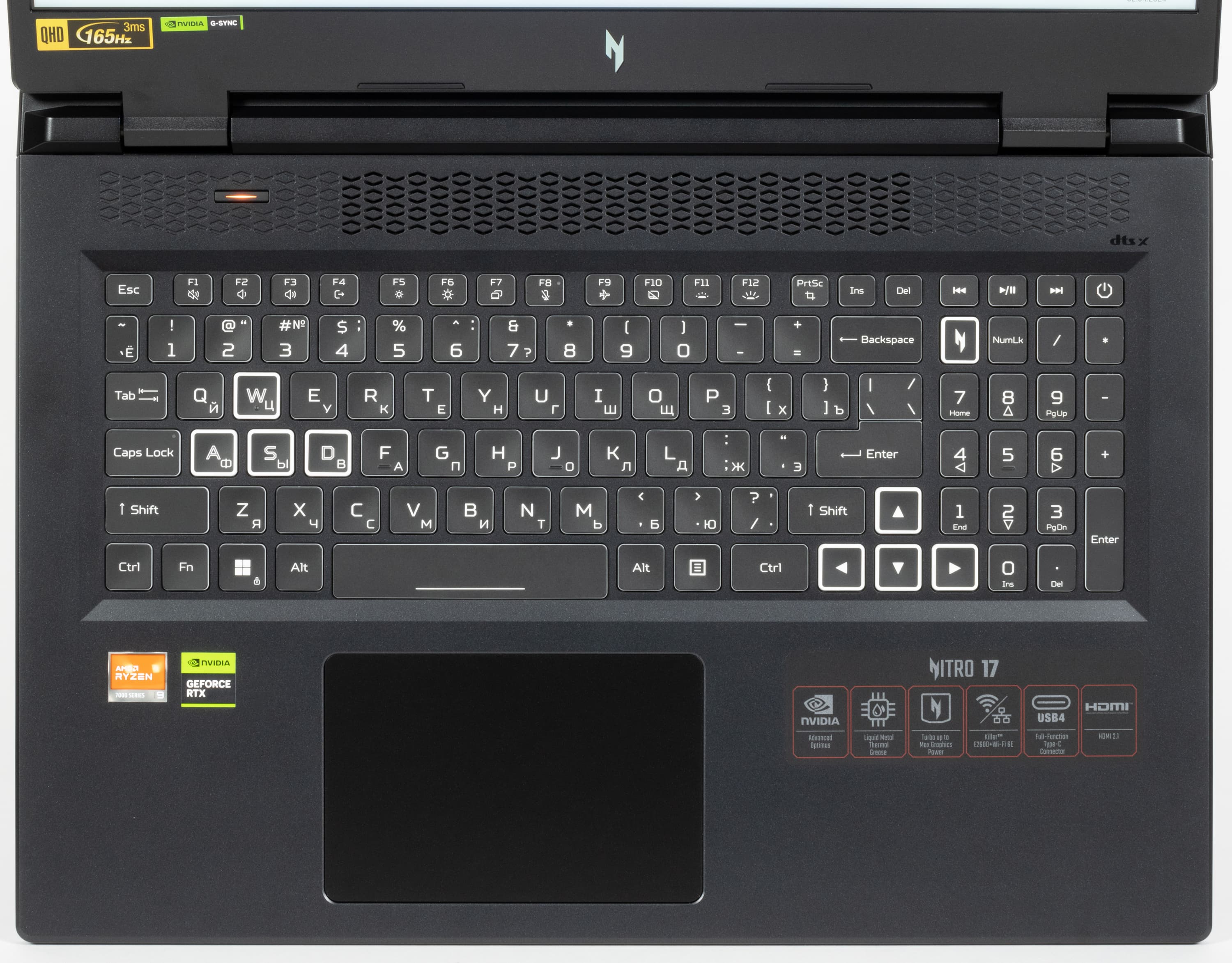 Согласно характеристикам CPU и GPU, герой нашего обзора представляет собой игровую модель среднего уровня. Отрадно, что создатели Acer Nitro 17 AN17-41-R3S4 не стали экономить на объеме оперативной памяти (32 ГБ DDR5, работает в двухканальном режиме) и системного накопителя (1 ТБ).