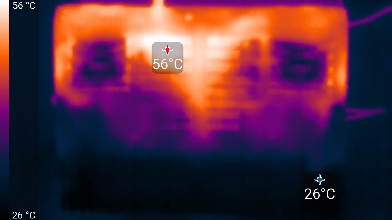 В наших испытаниях под максимальной нагрузкой видеокарта отбирала до 132 Вт мощности, что несколько ниже заявленного максимума.