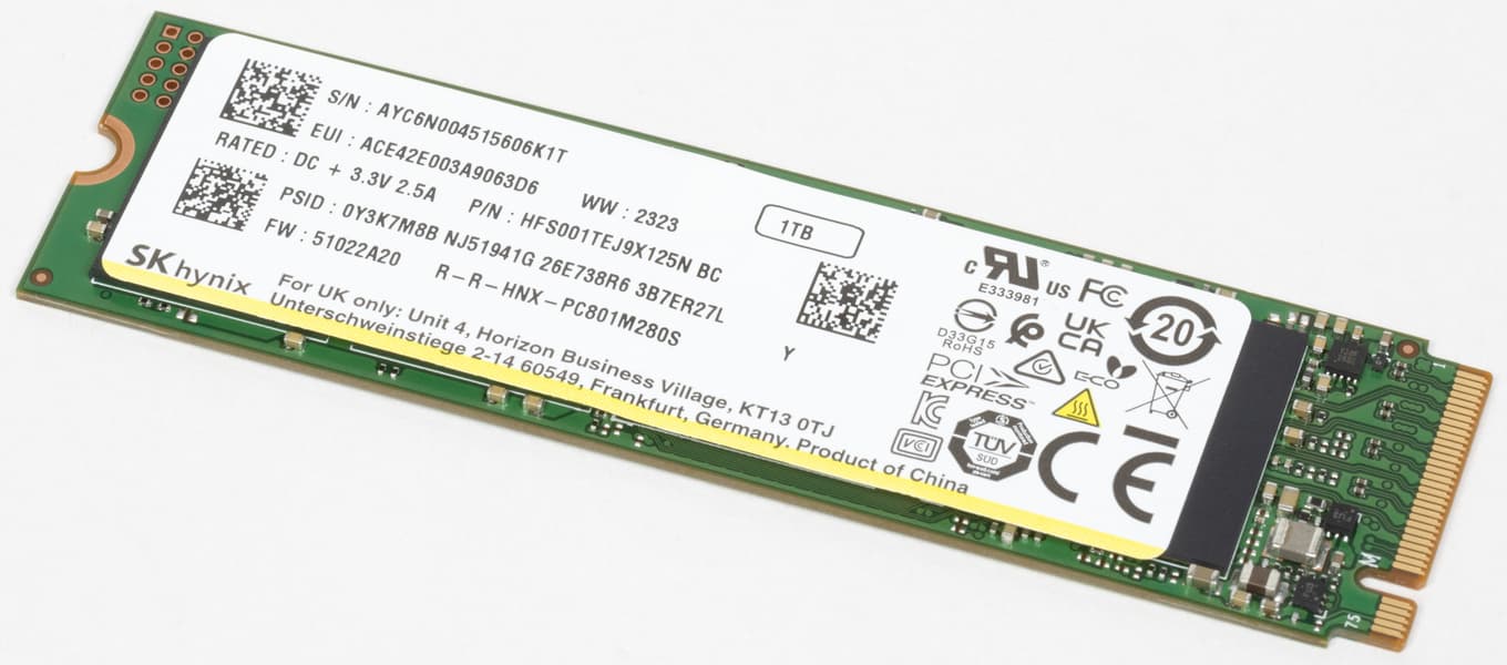 Второй свободен, а в первом установлено NVMe-хранилище SK Hynix с интерфейсом подключения PCIe 4.0 x4 вместимостью 1 ТБ.