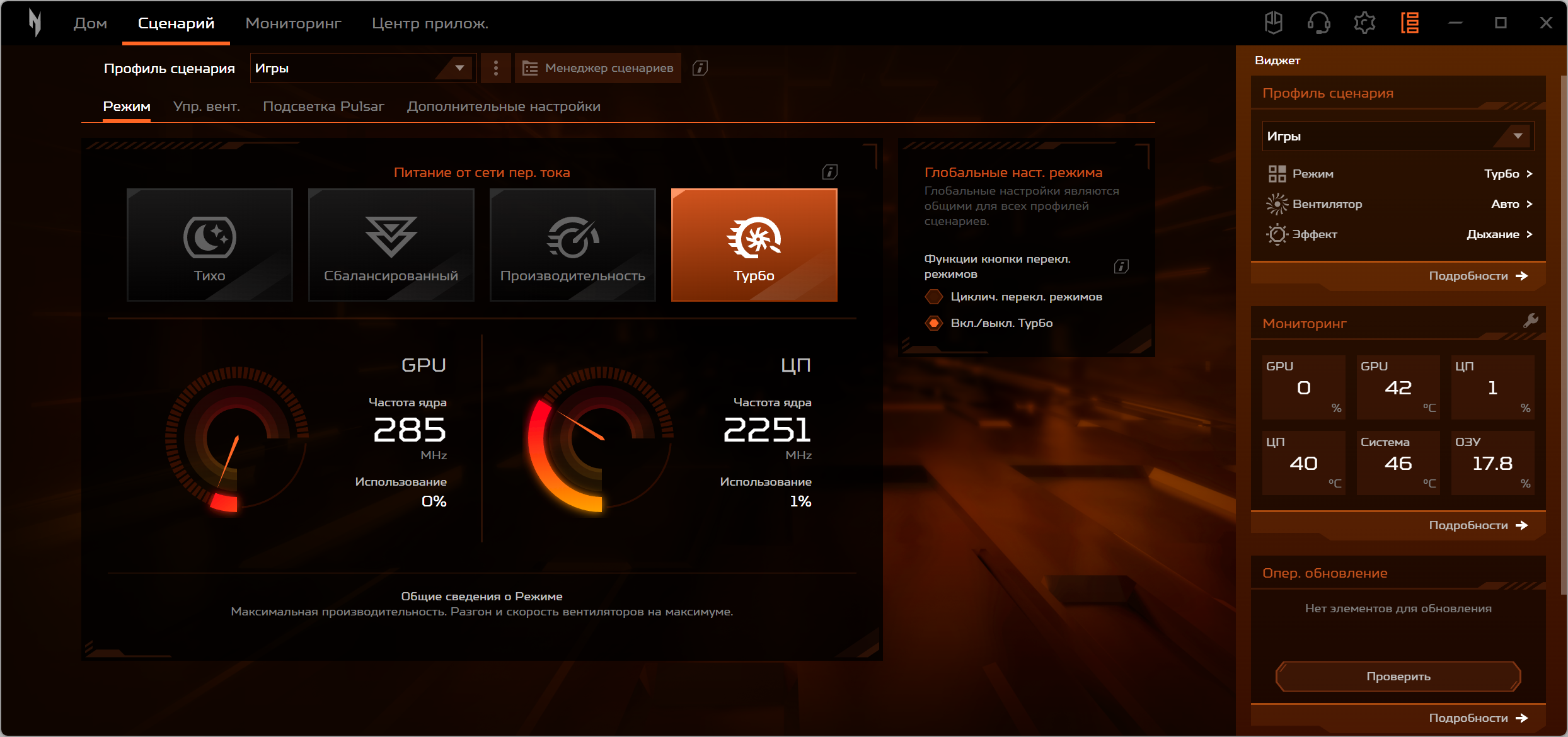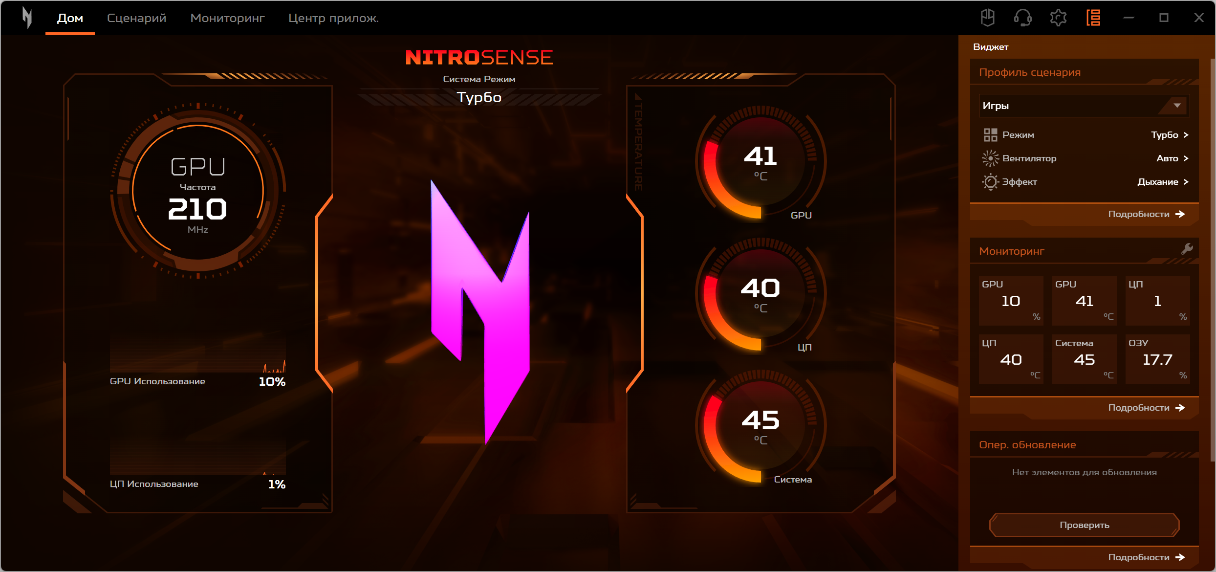 Для испытательных целей Acer Nitro 17 AN17-41-R3S4 был передан нам с установленной Windows 11 и фирменной утилитой NitroSense.
