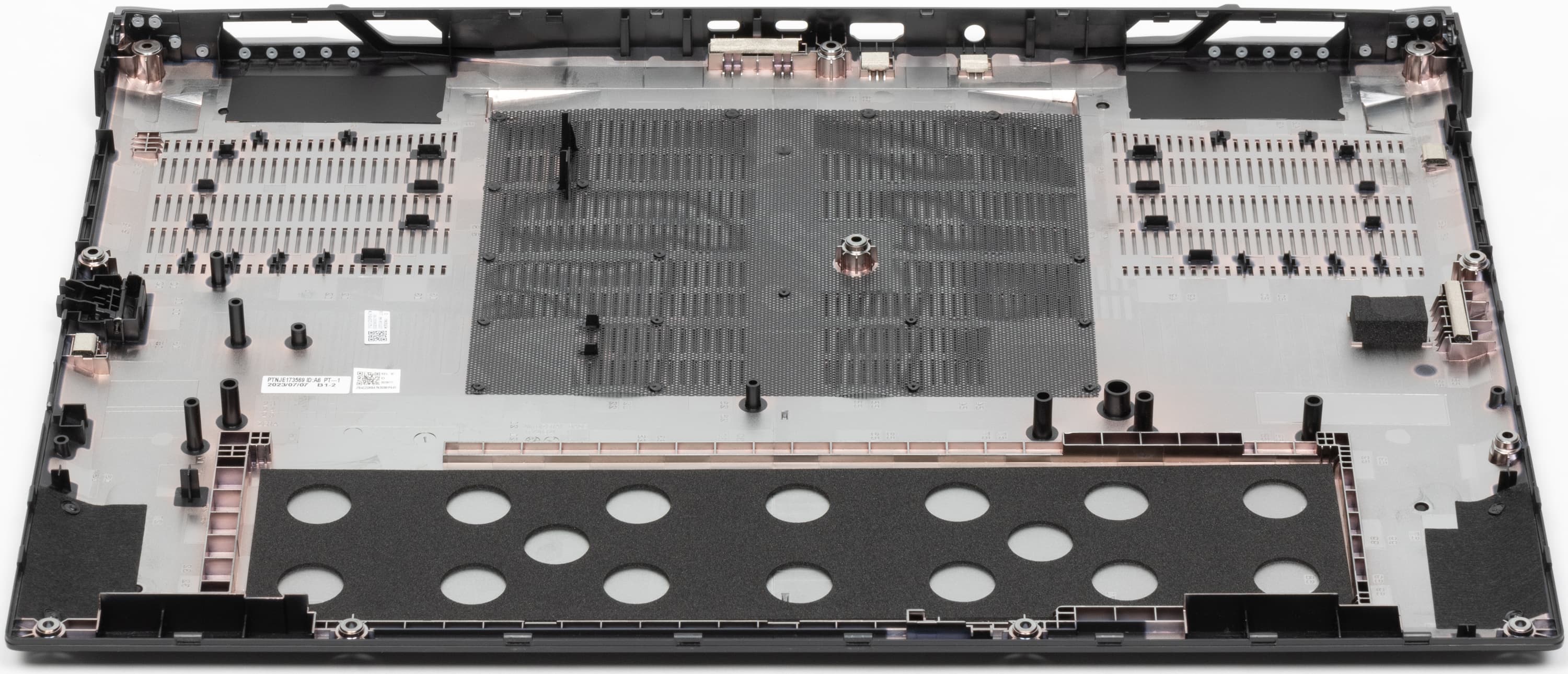 Примерно четверть нижней панели занята вентиляционными прорезями, которые, в числе прочего, располагаются под обоими кулерами. Под правым и левым динамиками есть щели для выхода звука.