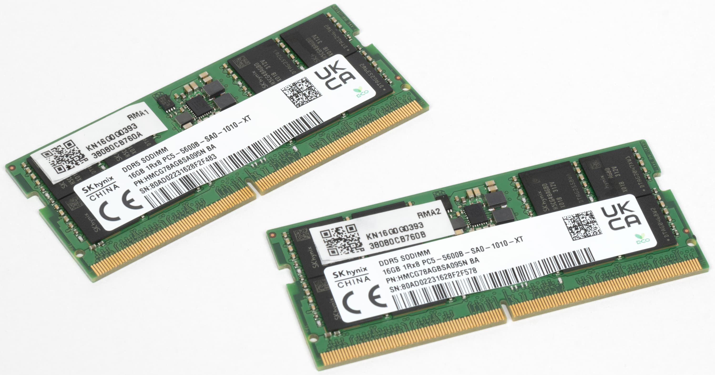 Оба слота заняты равноценными модулями SO-DIMM по 16 ГБ каждый (SK Hynix), благодаря чему память работает в двухканальном режиме.