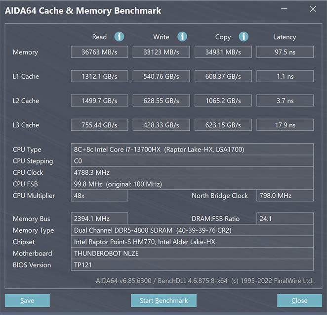 | Тест | Референсный результат Intel Core i5-9600K | Acer Nitro 17 AN17-41-R3S4 AMD Ryzen 9 7940HS | Maibenben Typhoon X677 AMD Ryzen 7 7735H | Thunderobot Zero G3 Max Intel Core i7-13700H |
