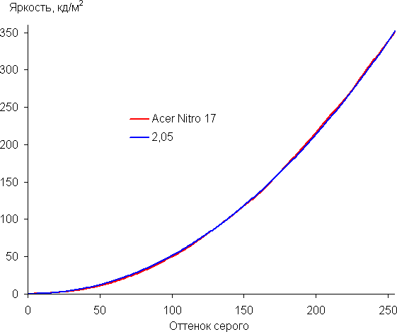 Внешняя поверхность матрицы черная жесткая и полуматовая (зеркальность выражена). Какие-либо специальные антибликовые покрытия или фильтр отсутствуют, нет и воздушного промежутка. При питании от сети или от батареи и при ручном управлении яркостью (автоматической подстройки по датчику освещенности нет, хотя датчик, вроде бы, и есть) ее максимальное значение составило 352 кд/м² (в центре экрана на белом фоне). Максимальная яркость довольно высокая, поэтому за ноутбуком как-то можно будет работать/играть на улице ясным днем, если расположиться в тени.