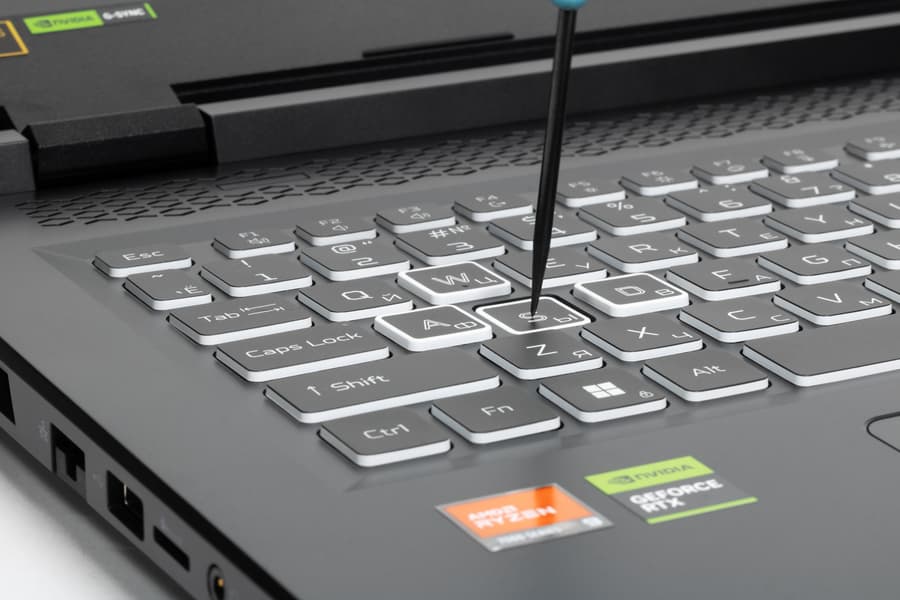 Для знакомства с внутренним устройством Acer Nitro 17 нужно вывернуть 10 винтов крепления нижней крышки к корпусу ноутбука. Они не заклеены стикерами и имеют простой крестообразный шлиц (Philips Type).