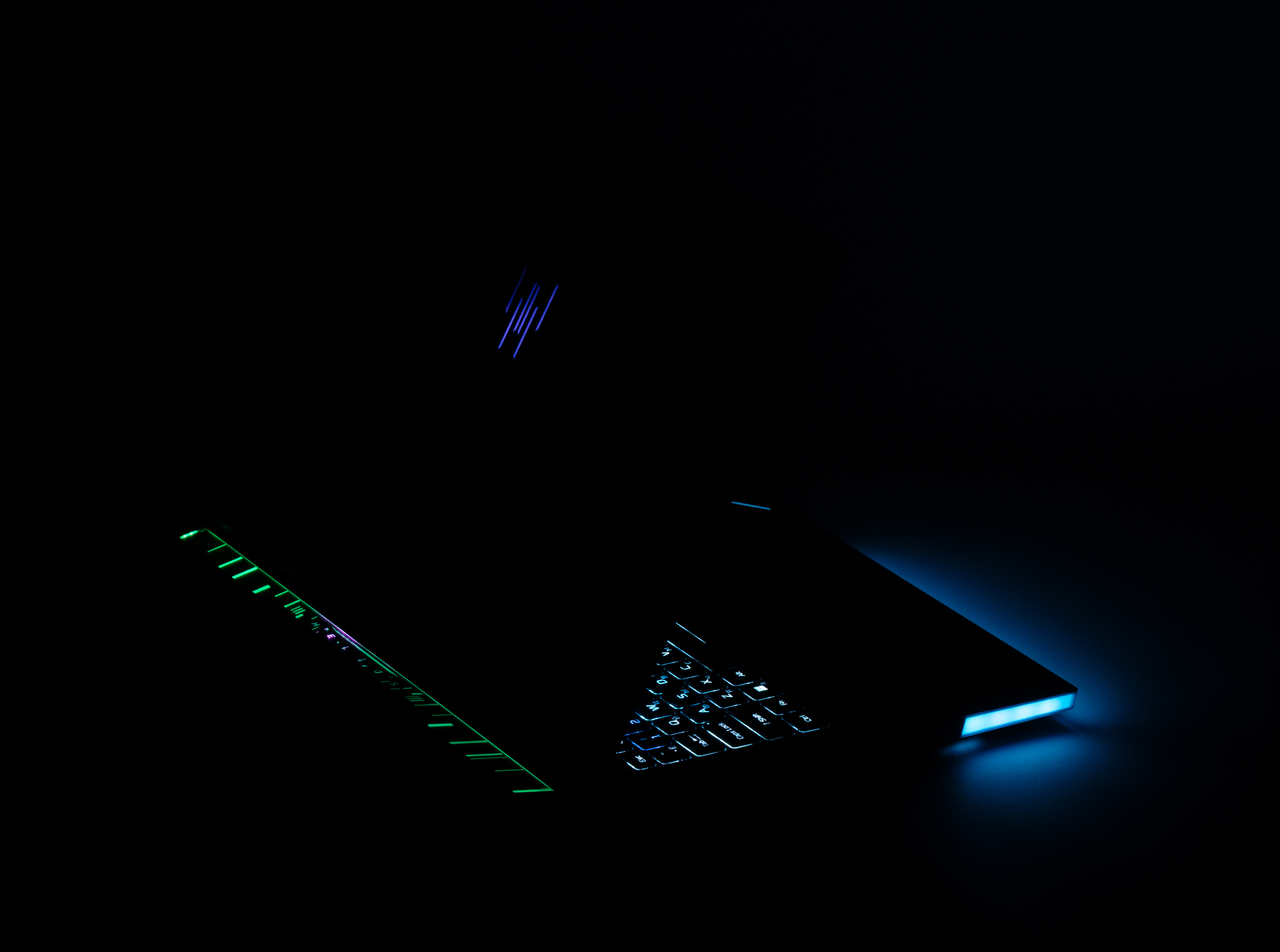 Есть и другие подсвечиваемые элементы, причем «в ассортименте»: тонкие полосы и логотип линейки в правой передней части верхней панели корпуса, обрамление его левого переднего угла, линии и надпись «Helios» на заднем выступе, а также узор в центре наружной поверхности крышки с экраном.