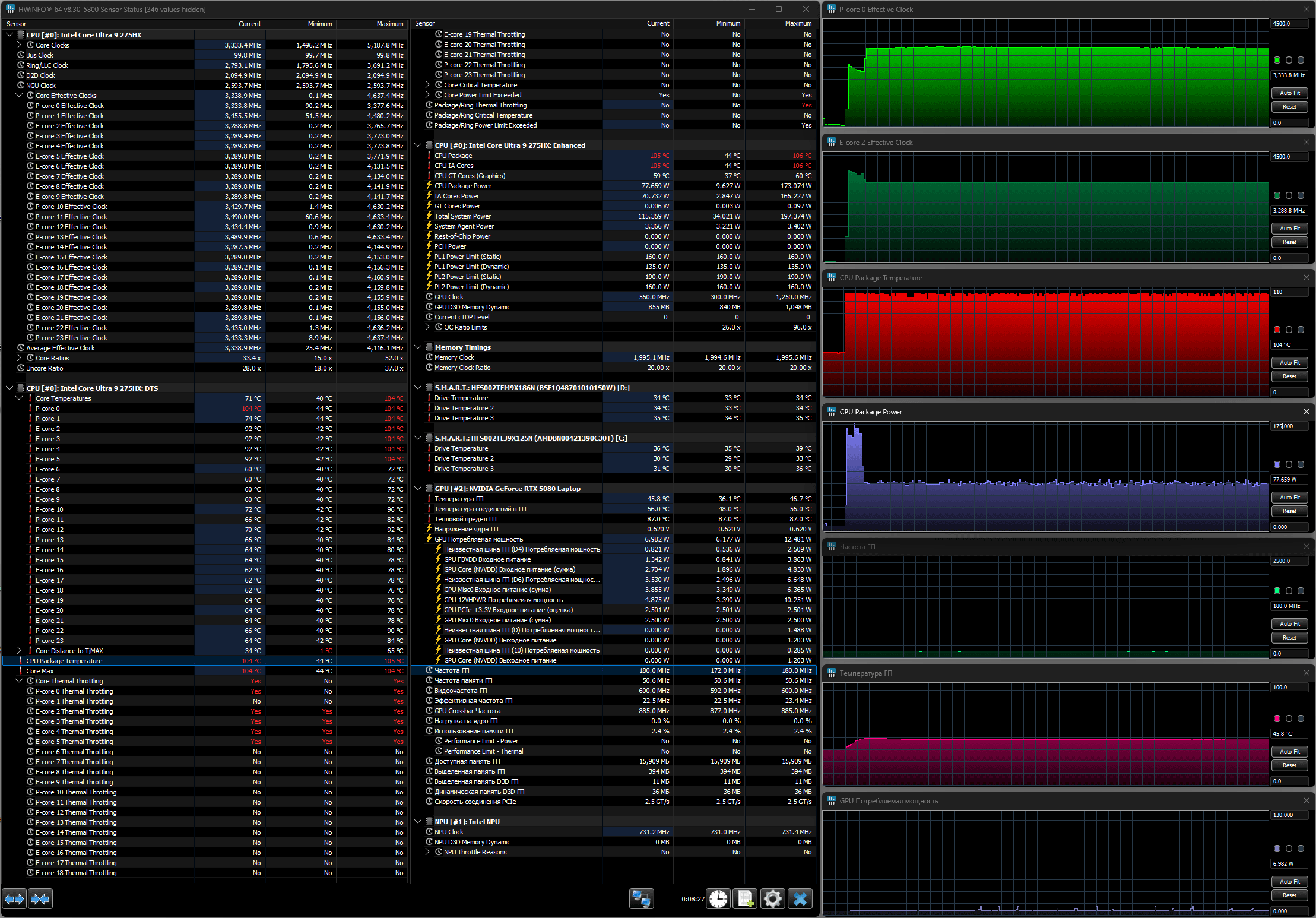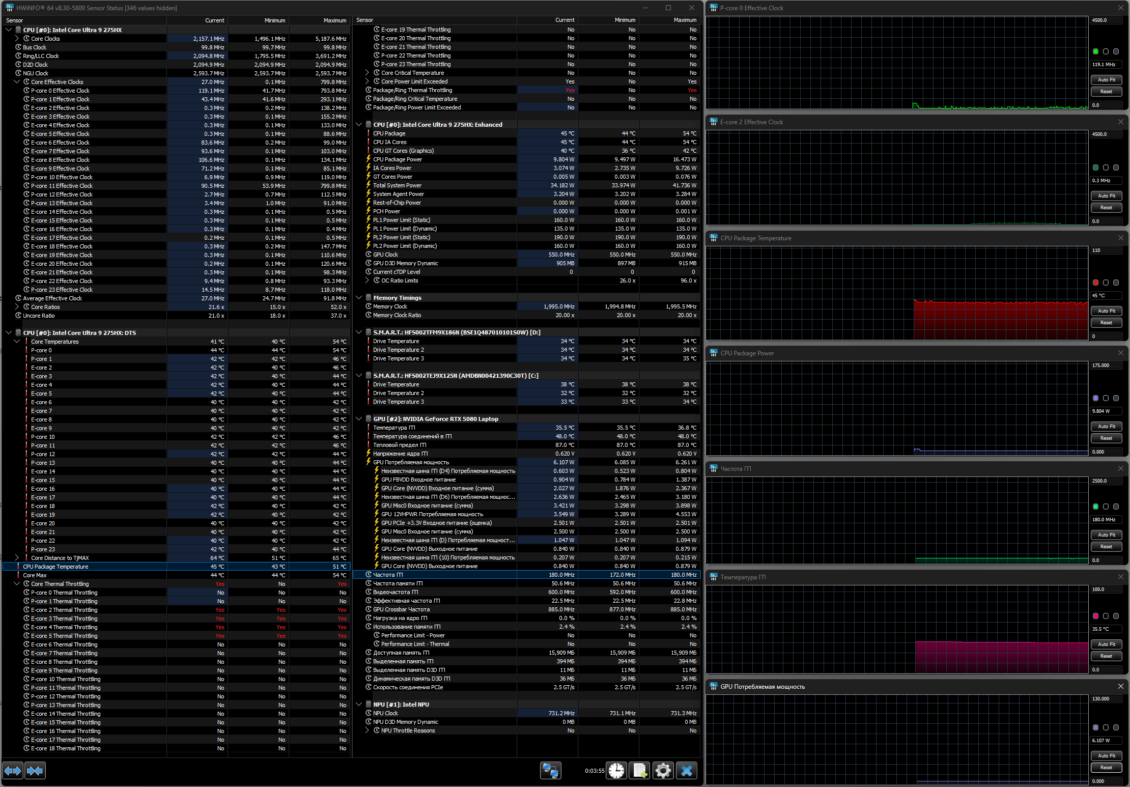 | Процессор | Intel Core Ultra 9 275HX (8+16 ядер/24 потока, 2,7—5,4/2,1—4,6 ГГц, 45—55/160 Вт) | |