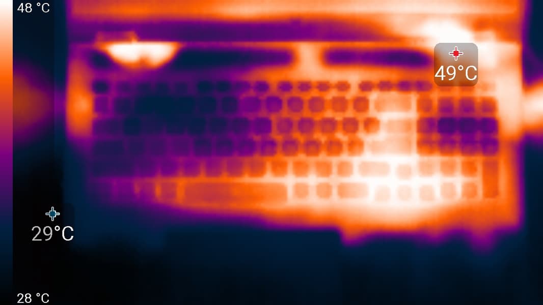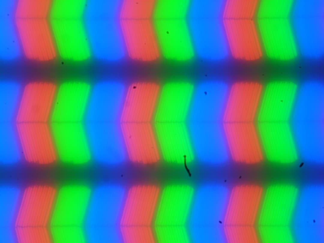 Внешняя поверхность матрицы черная жесткая и полуматовая (зеркальность хорошо выражена). Какие-либо специальные антибликовые покрытия или фильтр отсутствуют, нет и воздушного промежутка. При питании от сети или от батареи и при ручном управлении яркостью (автоматической подстройки по датчику освещенности нет) ее максимальное значение составило 510 кд/м² (в центре экрана на белом фоне). Максимальная яркость высокая, поэтому за ноутбуком как-то можно будет работать/играть на улице ясным днем, и даже под прямыми солнечными лучами на экране что-то можно будет рассмотреть.