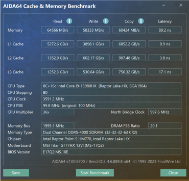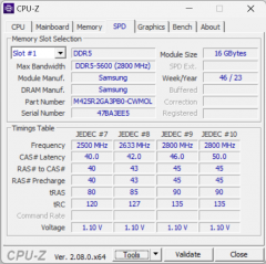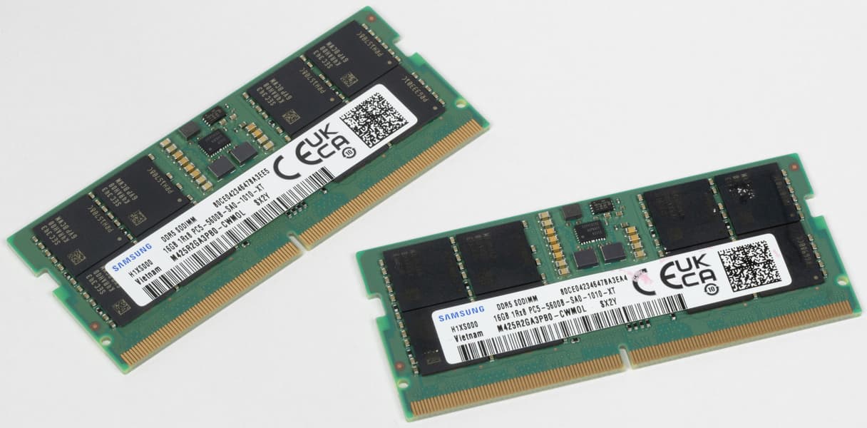 Ноутбук экипирован 32 ГБ оперативной памяти, которая работает в двухканальном режиме и набрана из двух модулей SO-DIMM DDR5-5600 по 16 ГБ (Samsung M425R2GA3PB0).