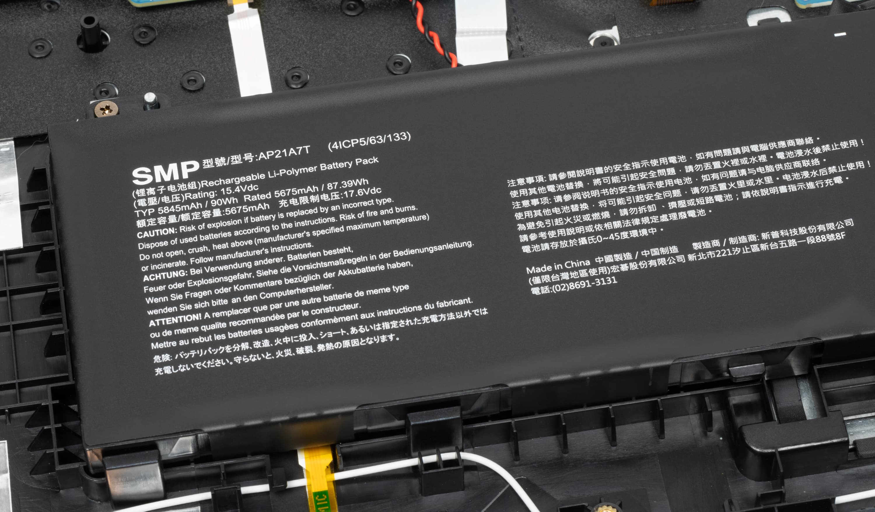 | Аккумулятор | четырехэлементный литий-полимерный, 90 Вт·ч | |